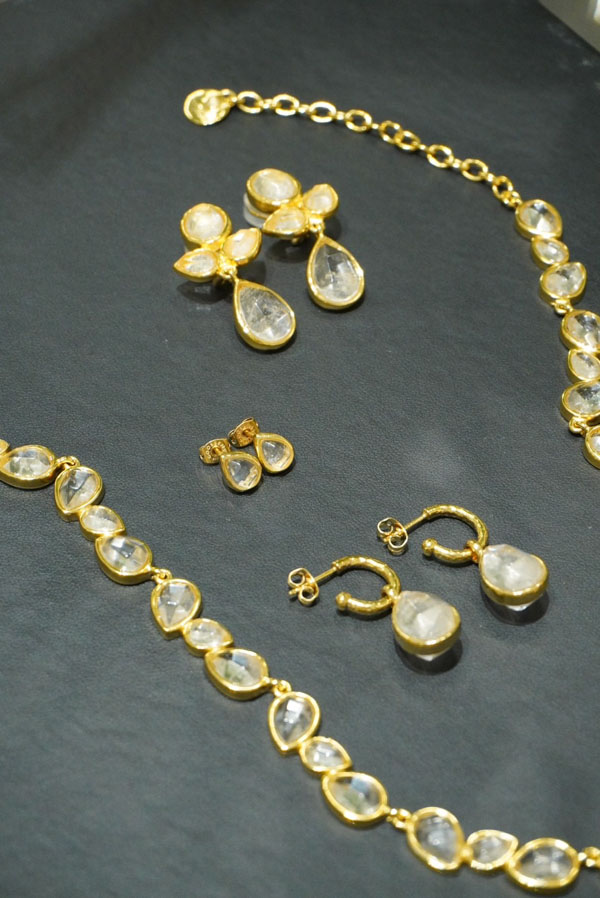 雫型の宝石が一粒一粒光り輝くジュエリー。