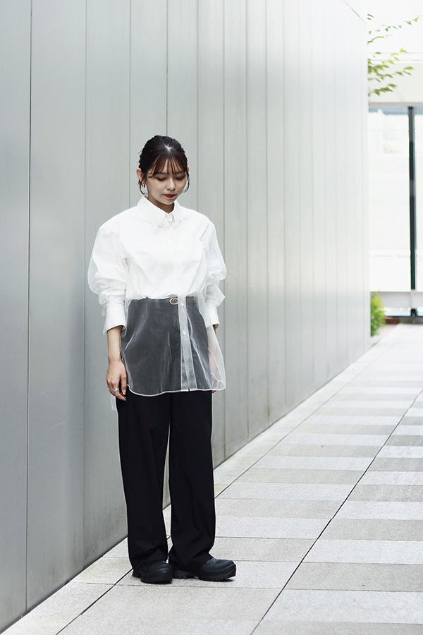 – テイストは綺麗めカジュアルが多く、Mame KurogouchiやFETICOのような女性らしいフェミニンなトップスにデニムなどのカジュアルなボトムスを合わせることが多いです。基本的にモノトーンが多いので、シンプルになりすぎないよう、アクセサリーは存在感のある大ぶりなものを選ぶことが多いです。