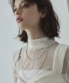 シンプルなデザインなのでネックレスを重ね付けして華やかさをプラスした着こなしに。
