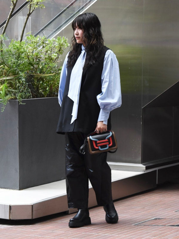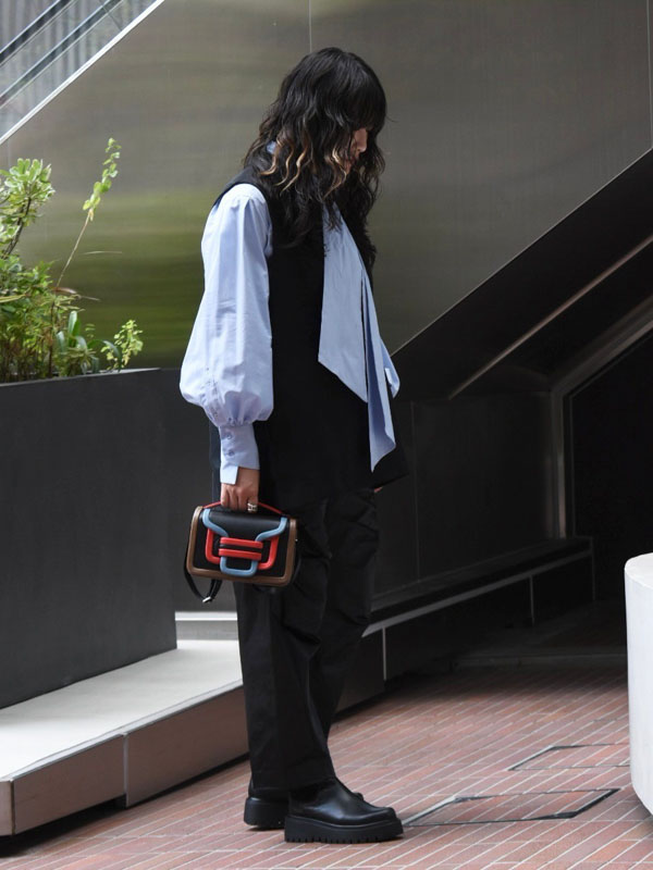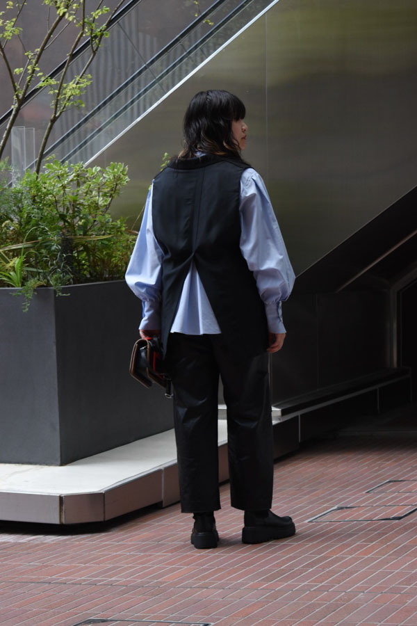 ジレを合わせてレイヤードといったトレンドも織り交ぜた今季トレンドをぎゅっと詰め込んだコーデの完成です♪