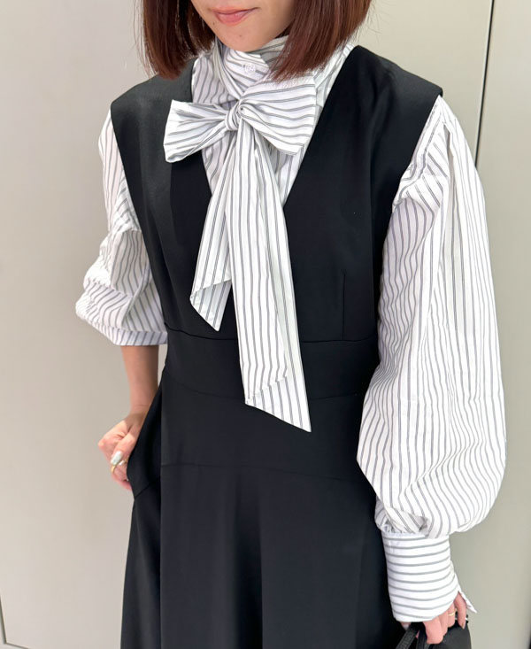 ボウタイは取り外し可能なため、マニッシュにもフェミニンもお召しいただけます♩