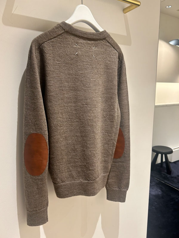 メゾンの代表的なエルボーパッチをリバイバル演出したニット。