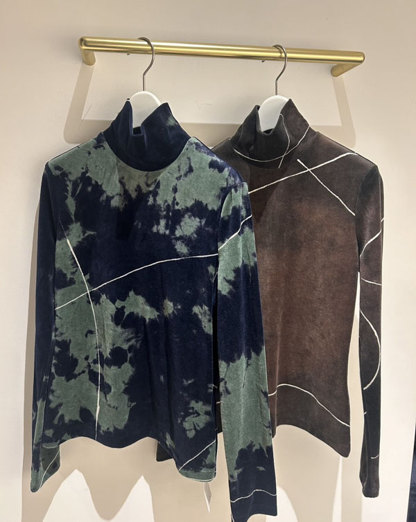 24春夏に続き、デザイナーの黒河内真衣子さんが佐賀を旅した時に目にした風景や陶片が着想源になっています。