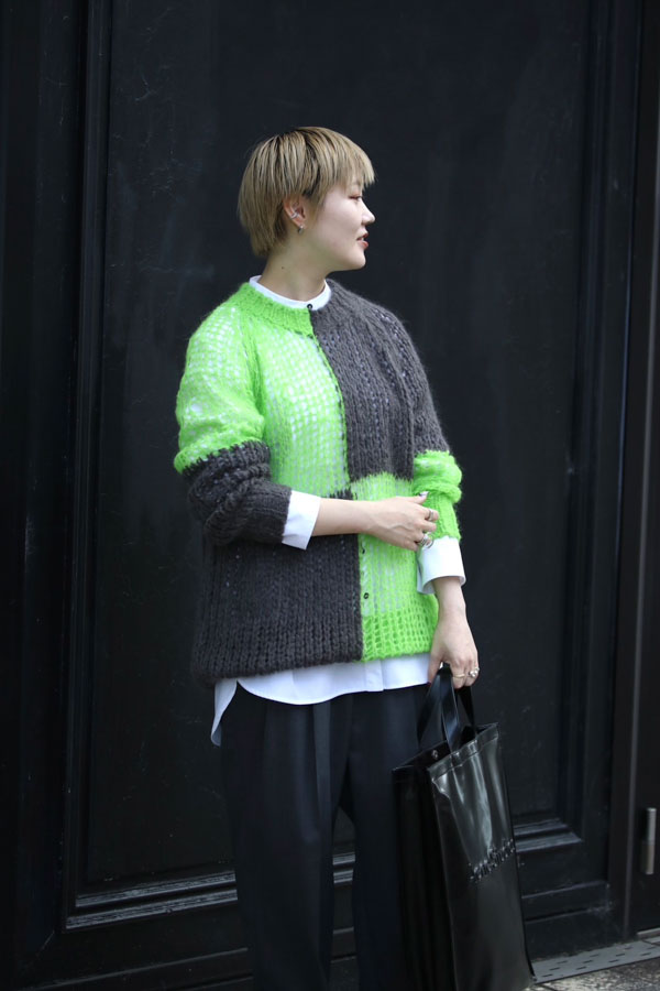 お次は、かほこから「Mame Kurogouchi(マメ クロゴウチ)」のモヘアカーディガン。
