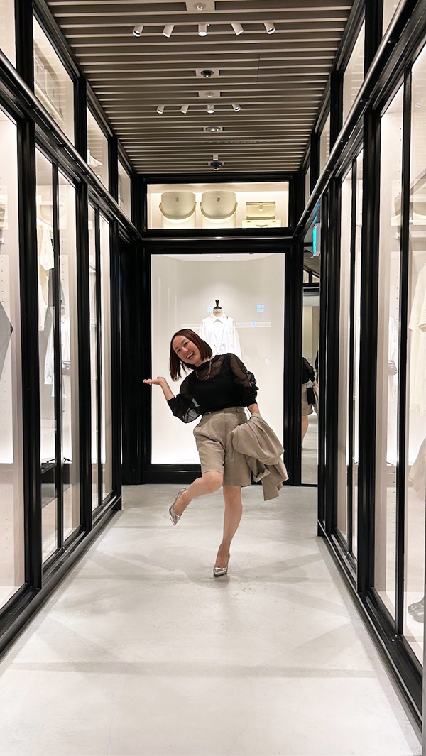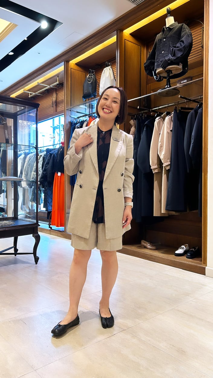 Mame Kurogouchi(マメクロゴウチ)のお洋服を着て、店頭でかぶることもあり、その時は嬉しくなって記念写真を撮ってしまいます!