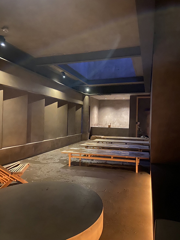 外気浴スペースは一部の天井が吹き抜けになっている半外気の空間です。