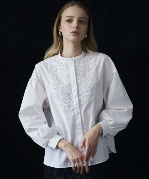 上質な胸元のレースが素敵な長袖ブラウス。