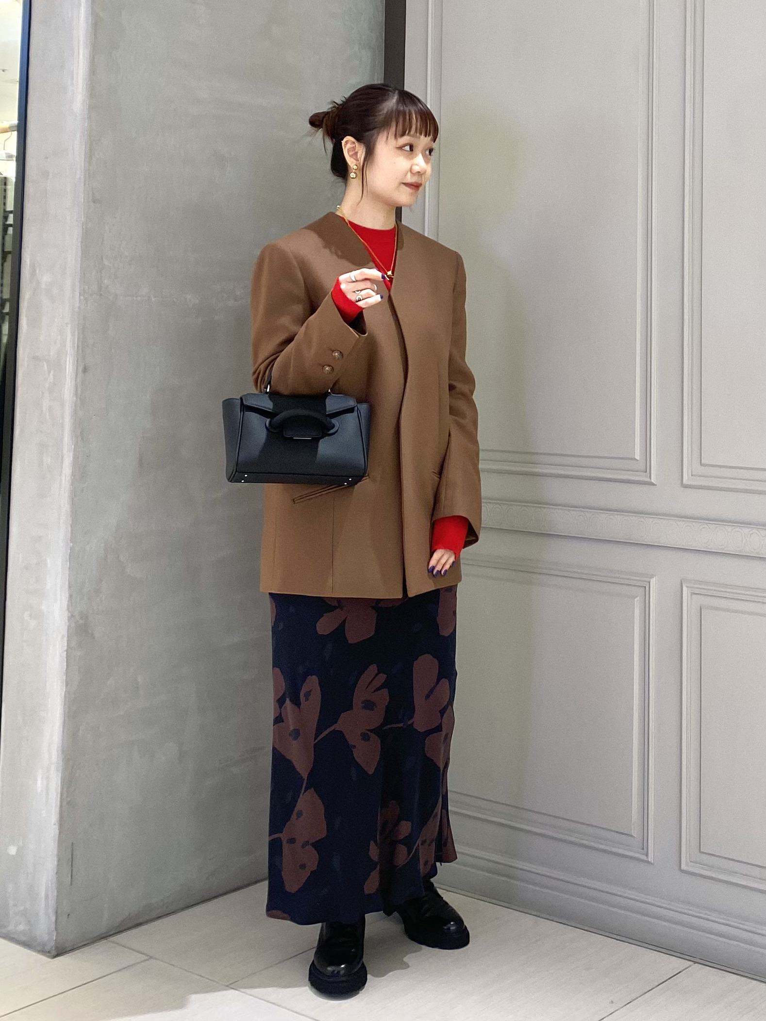 赤ニットを一枚で着るのは勇気がいる…!という方はジャケットの袖からチラ見せがオススメです。