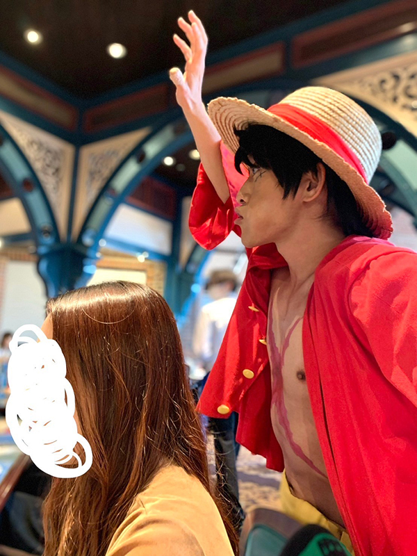 夏の期間USJでは、麦わら一味のコックであるサンジが海賊レストランをオープンしており、そちらで食事をしているところです。
