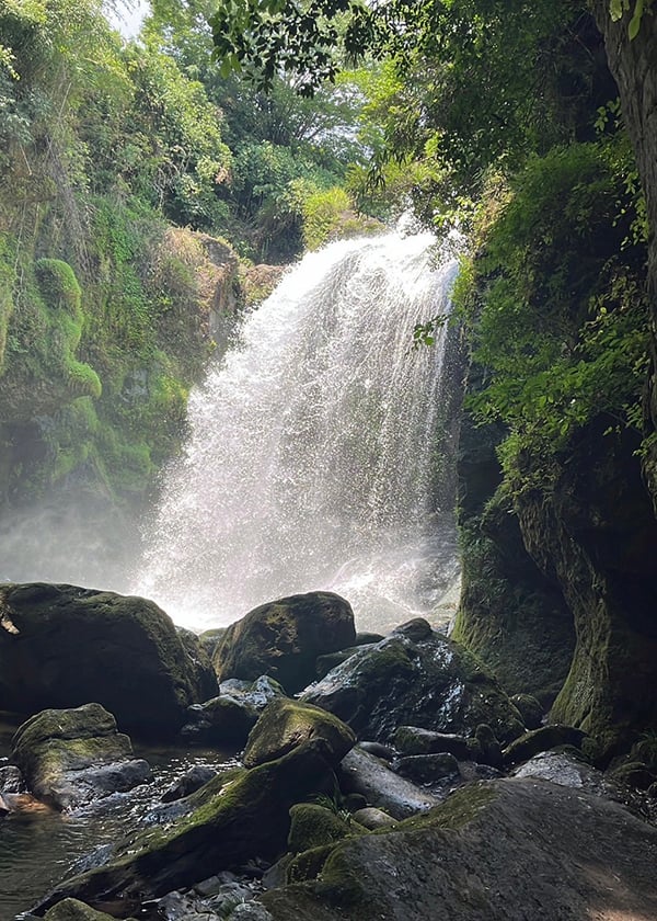 この日はとても暑くて、歩くだけで汗が流れてくる程でしたが、滝に近づくにつれ汗も引くほど涼しくなり、マイナスイオンをとても感じられ最高な気分でした^^