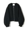 存在感のあるジャガード生地と丸いフォルムが印象的なノーカラージャケットです。