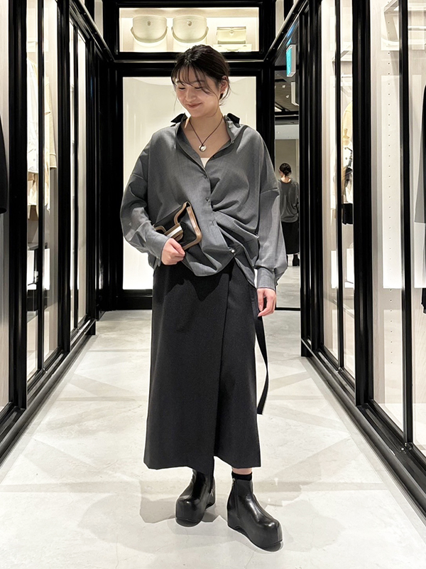 私がオススメするのはマメクロゴウチのブラウスと合わせたスタイリング。