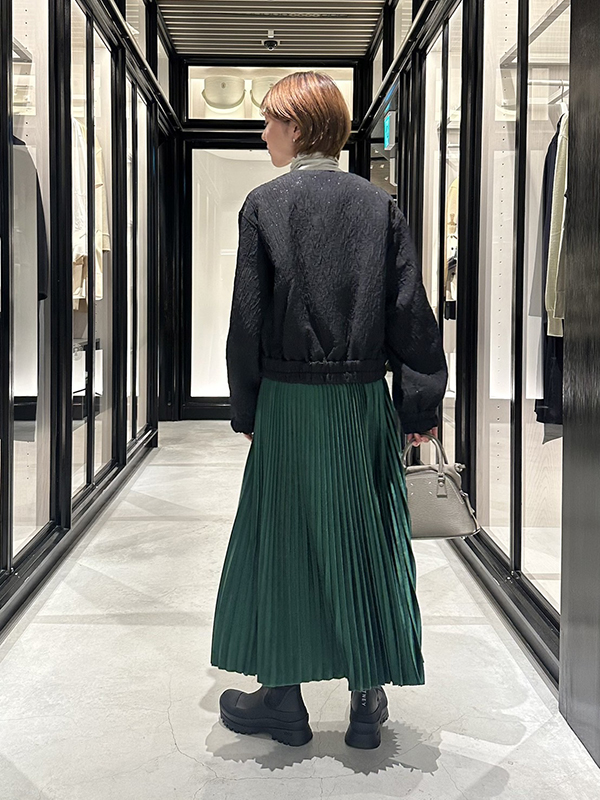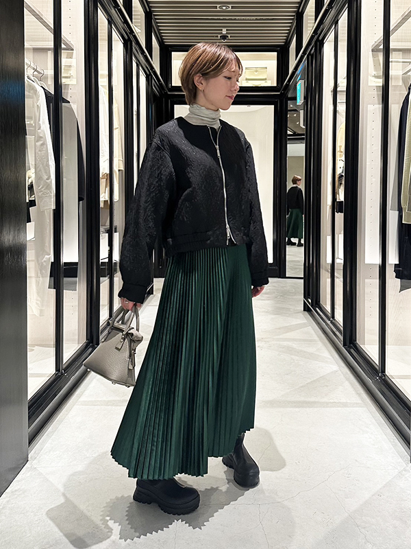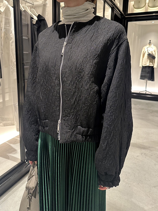 ブルゾン型なので、エレガントすぎずにデニムパンツとも合わせやすいアイテムです。