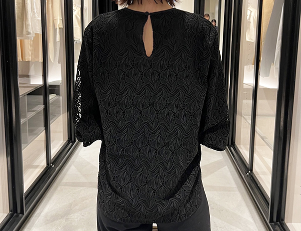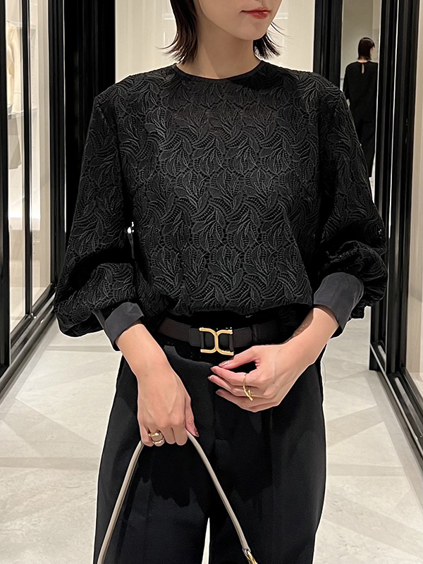 ボタニカル柄レース生地を贅沢に使用したエレガントなブラウス。