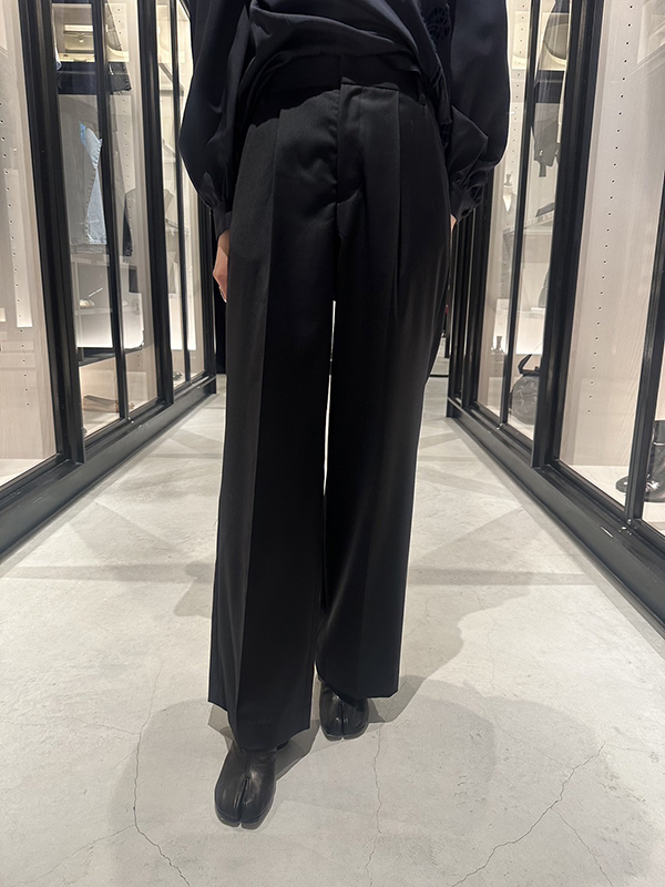 Super110ウールとシルクをブレンドした上質な素材と美しいシルエットにこだわったセミワイドパンツ。