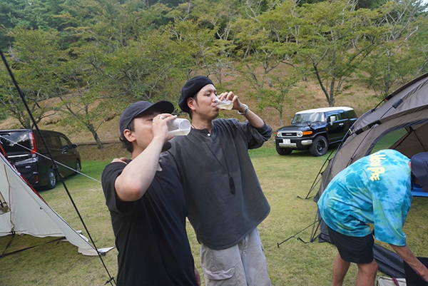 テントや器材、食材、飲み物まで本社スタッフの田中さん、オンラインディレクターの山内さん、福山店店長の今田さんが手配してくださり、準備は万端です。