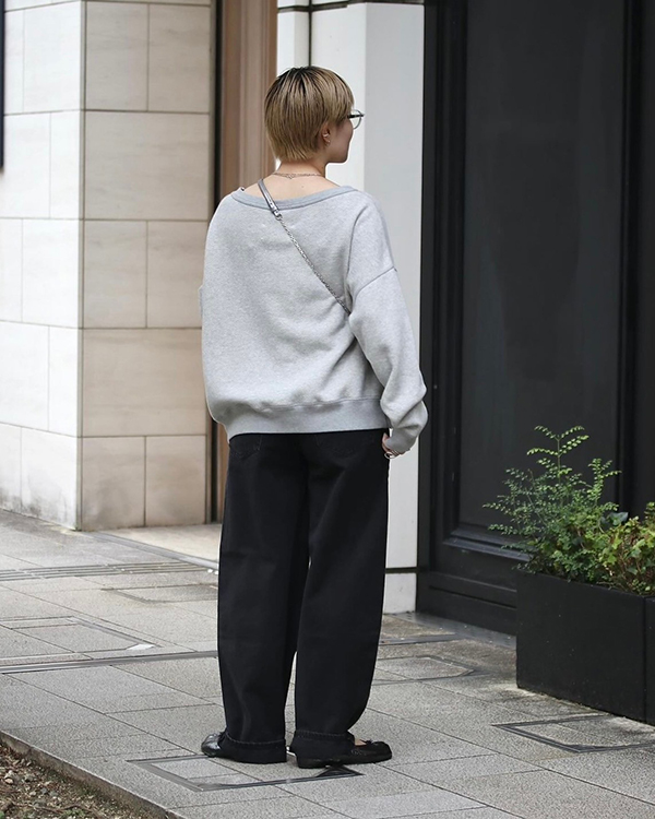 ショート丈スウェット×ワイドデニムのテッパンコーデです。