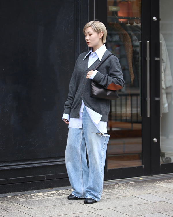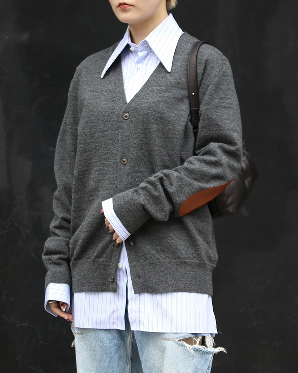エルボーパッチが施されたカーディガンは1着は持っておきたいベーシックアイテムです。