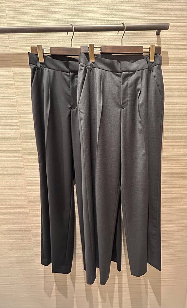 脚を通した際の着心地の良さと、美しいシルエットにこだわったセミワイドパンツのためまず一度ご試着されてみてください!
