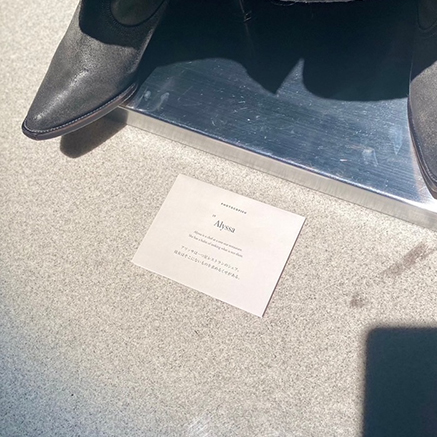 モデルが服を纏い会場を闊歩するファッションショー形式でコレクションを披露するのが主流な中、インスタレーション形式はとても珍しく、1体1体のルックと添えられた人物像の背景に想像しながらの時間はとても楽しめ、デザイナーさんの竹内さんのお人柄や雰囲気を表現できている空間に感動しました。