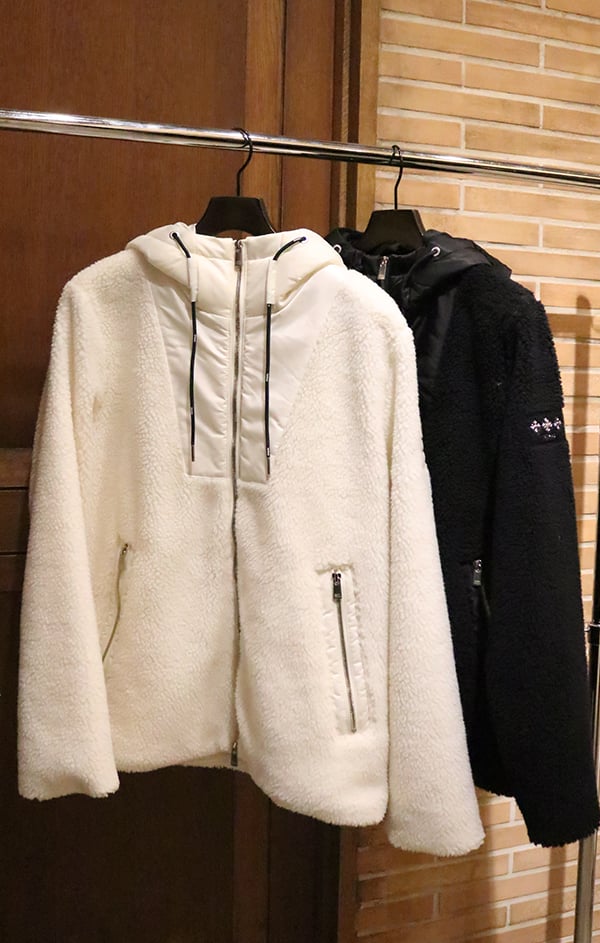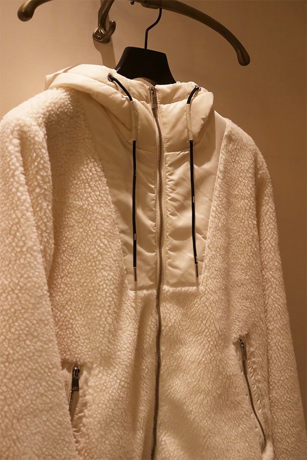 身頃と袖には高級感のあるポリエステルボア素材を使用し、軽量かつ撥水効果のあるナイロンを使用しています。異素材を組み合わせることにより、機能性とデザイン性の両方に優れた一着です。シンプルながらも、左腕のベルクロにあしらわれたTATRASロゴがシンプルで使い勝手の良いアイテムになっています。