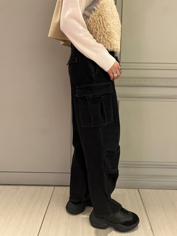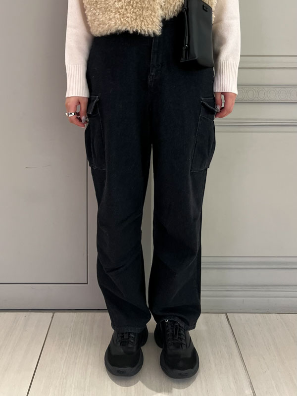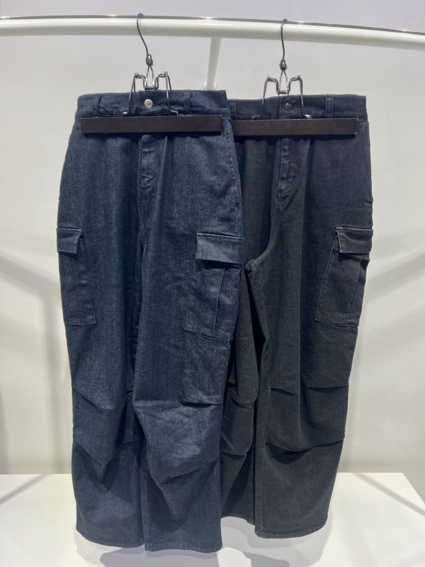 ユニセックスで着用できるデニムカーゴパンツ。5サイズ、2色展開です!