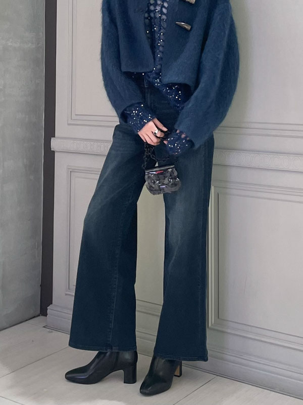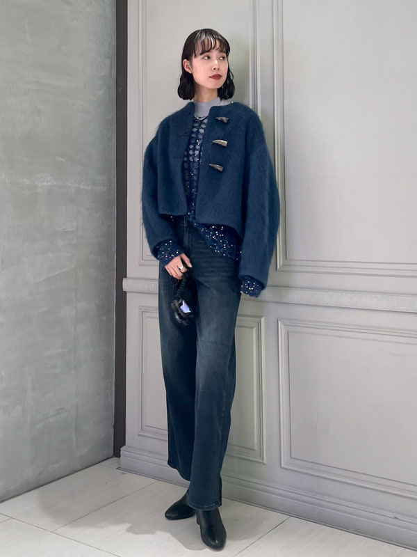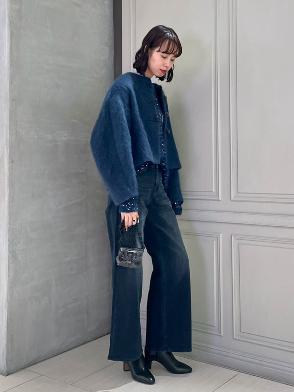 ダークインディゴよりもブルーが強めの珍しいお色なので、今回は同系色でリンクさせ、まとまりのある大人なスタイリングに!