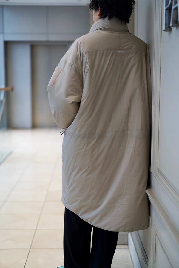 表地、裏地にPERTEX素材を使用したHYKE(ハイク)の中綿ダウンコートからご紹介。