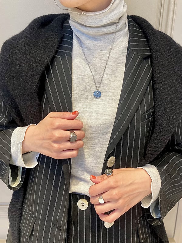 ひとつひとつに存在感がありながら重ね付けしても自然に馴染み、デコラティブになりすぎない。トムウッドの洗練されたシャープさの成せる技ですね。