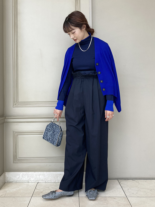 ブルーのワントーンコーディネートもおしゃれに決まります。