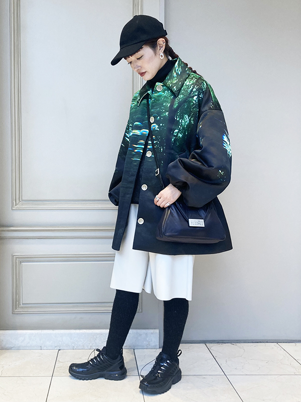 コットンデニムブークレ素材で生地に表情がある今期を代表する注目アイテムです!