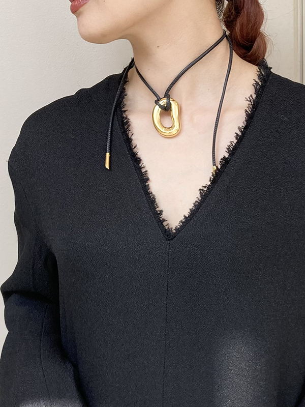 Charlotte Chesnais(シャルロットシェネ)のSHIMAPENDANT。ニュアンスたっぷりのフープトップが目を惹くレザーネックレスです。芸術的な彫像を彷彿とさせるアブストラクトなデザインと、バランスの取れたフォルムが特徴。