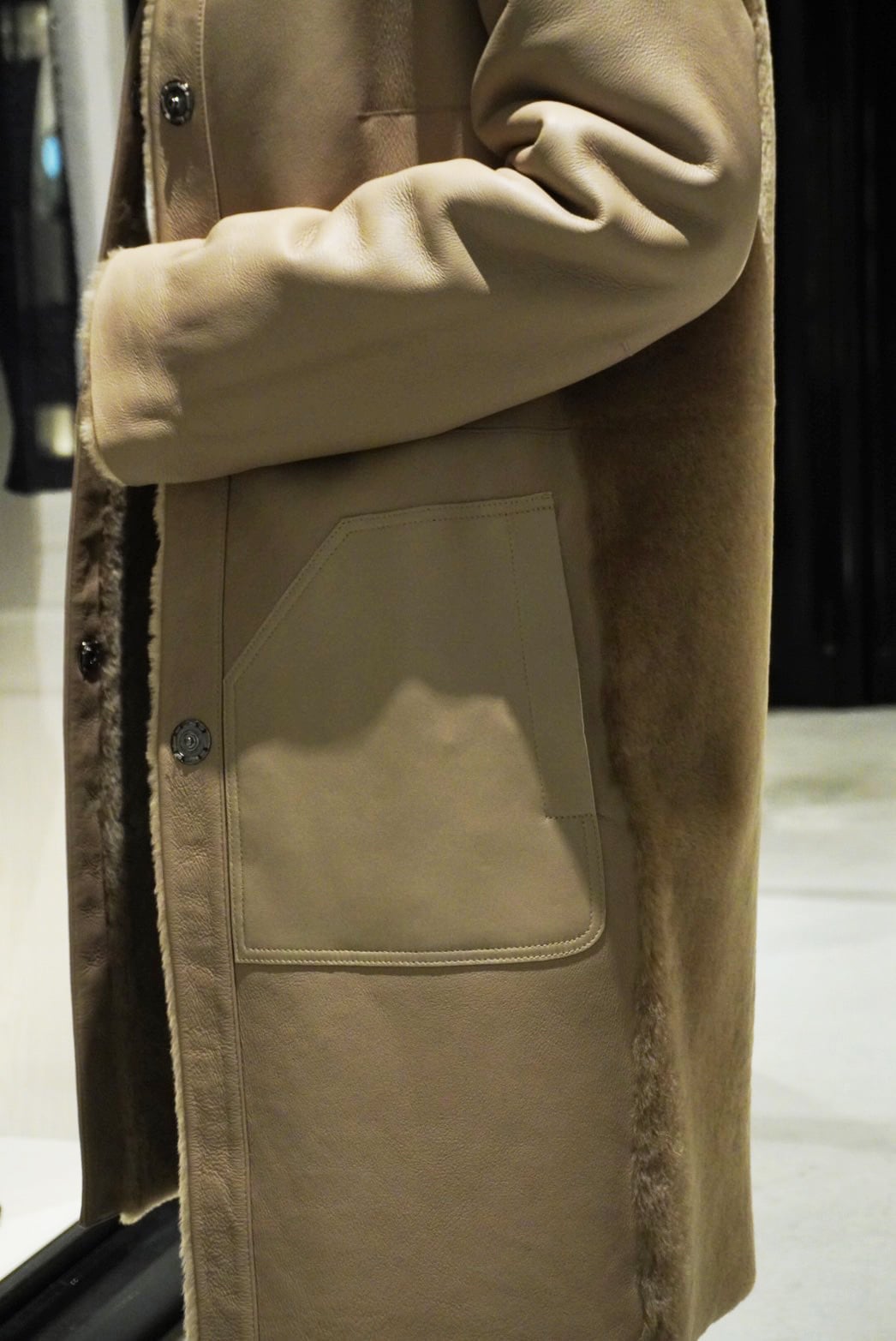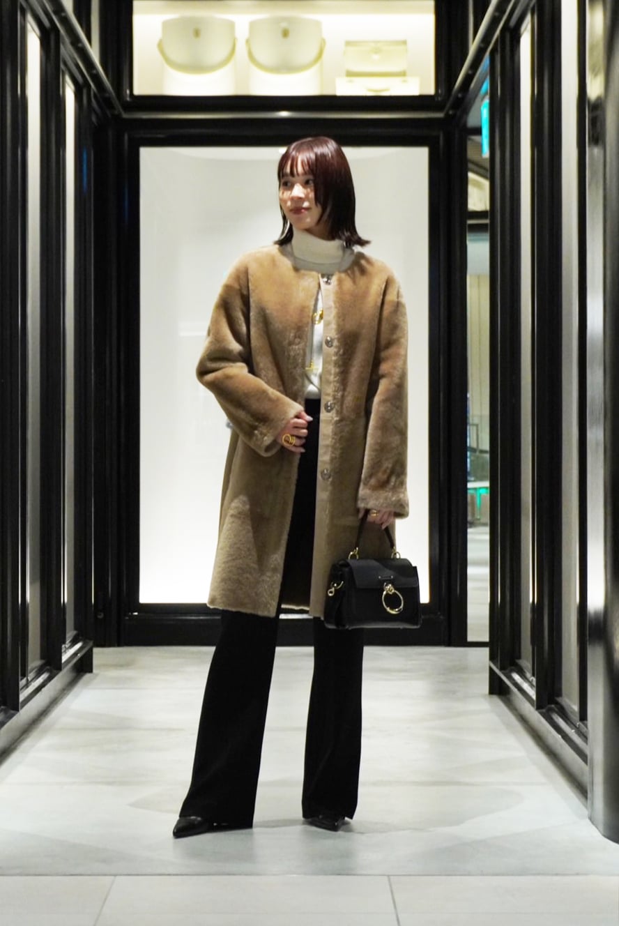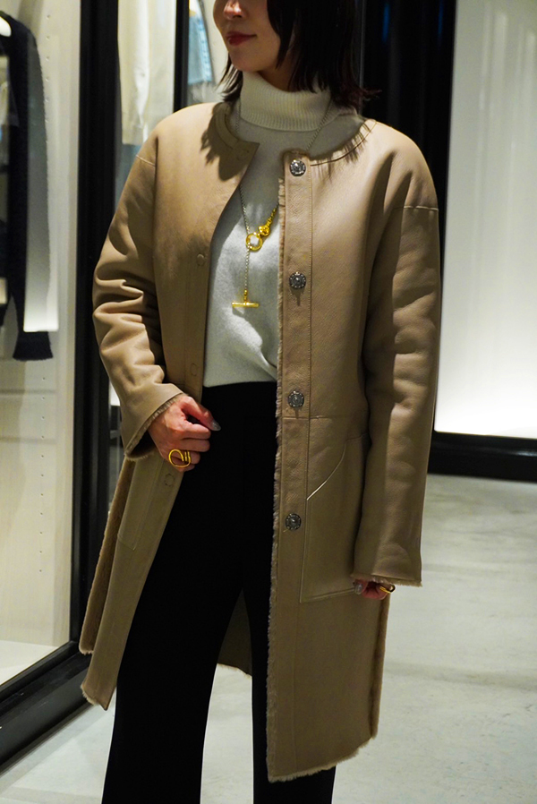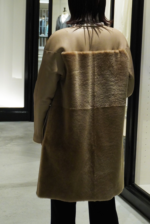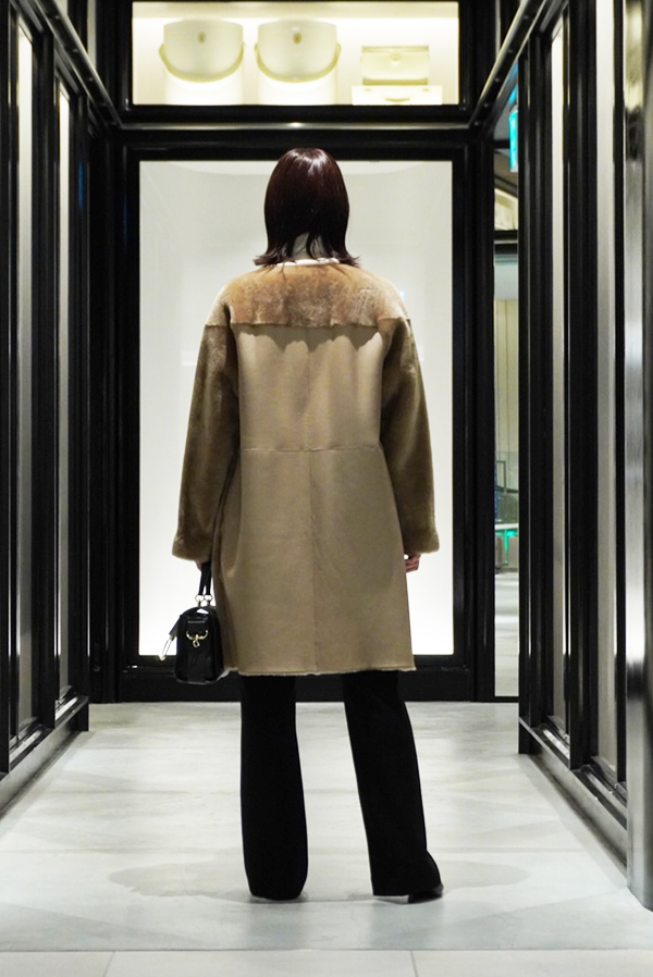 柔らかな上質ラムレザーを使用し、背面はレザーの切り替えになっている贅沢なデザインのムートンコート✨