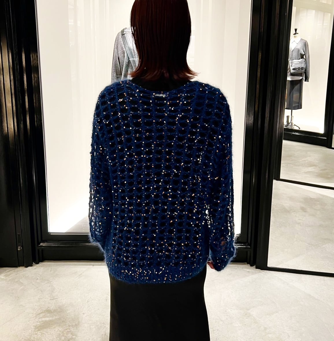 シルクモヘアなので思った以上に生地は柔らかく、スパンコールはなんと全て手作業で施されています✨