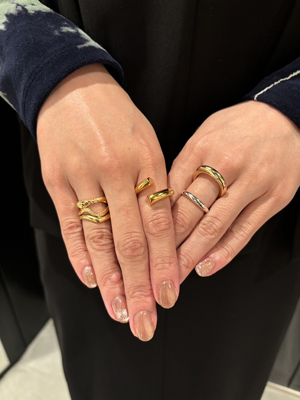 ネイルはワントーン派で構成されている麻布台店スタッフですが、ジュエリー好きでも構成されています!(笑)