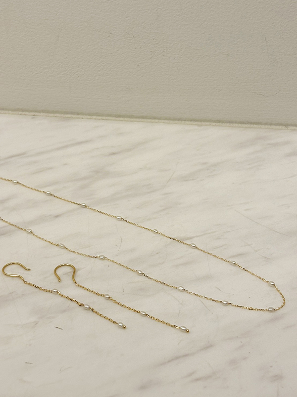 ゴールドの凛としたツヤ感に、華奢なチェーンの儚さが抜群のコンビネーションなアイテムです!