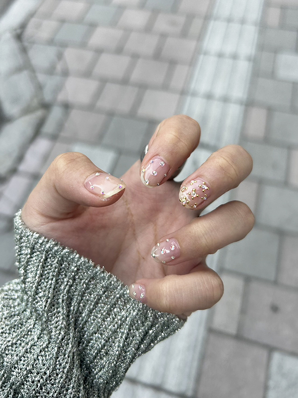 気分を変えた、メタリックパーツのネイルもクリスマスにピッタリです!