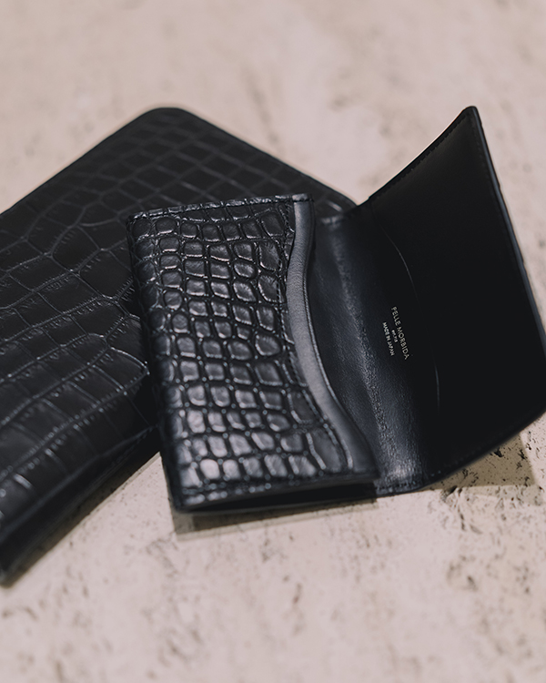 同じくクロコダイルレザーの名刺入れは、第一印象を大切にする方にぴったりのアイテムです。堅牢でありながらエレガントなデザインは、取引先や同僚との会話のきっかけにもなるかもしれません。大切な人の成功を願う気持ちを込めて、贈りたい一品です。