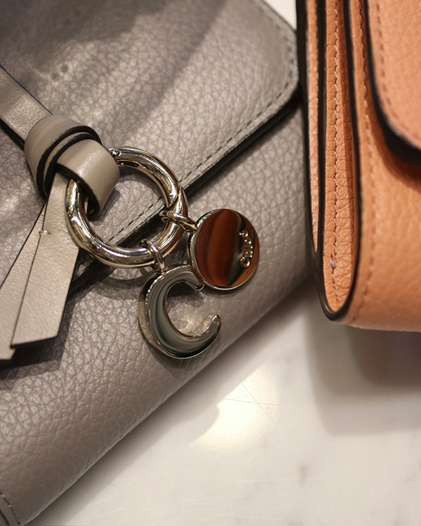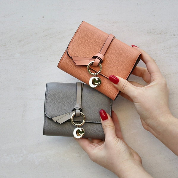 フロントは結び目のあるリンクとゴールドのイニシャルチャームで仕上げられており、Chloeのお財布と一目で分かるデザインが気分を上げてくれます◎