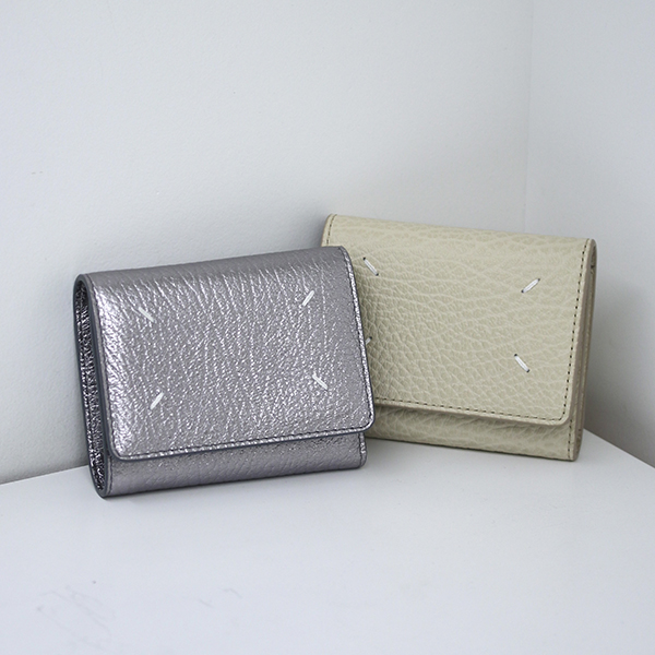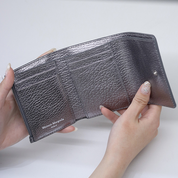 フロントにはMaison Margiela(メゾンマルジェラ)を象徴するシグネチャーの4ステッチがデザインされています。スナップボタン開閉で、内側には6つのカードスロット、フラットポケット、ジップ付きコインポケットを備えているため、機能性もバッチリ!