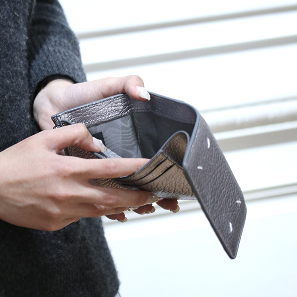 紙幣用コンパートメント、小銭入れ、カードスロット6箇所を備えています。小銭入れは素材の柔らかさによって大きく開くようになっているので、現金派の方にも嬉しい収納力です!
