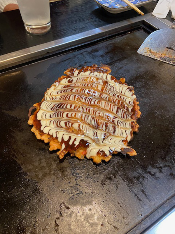 ゲソ焼き&いか焼きから始まり、もんじゃとお好み焼きをいただきました。