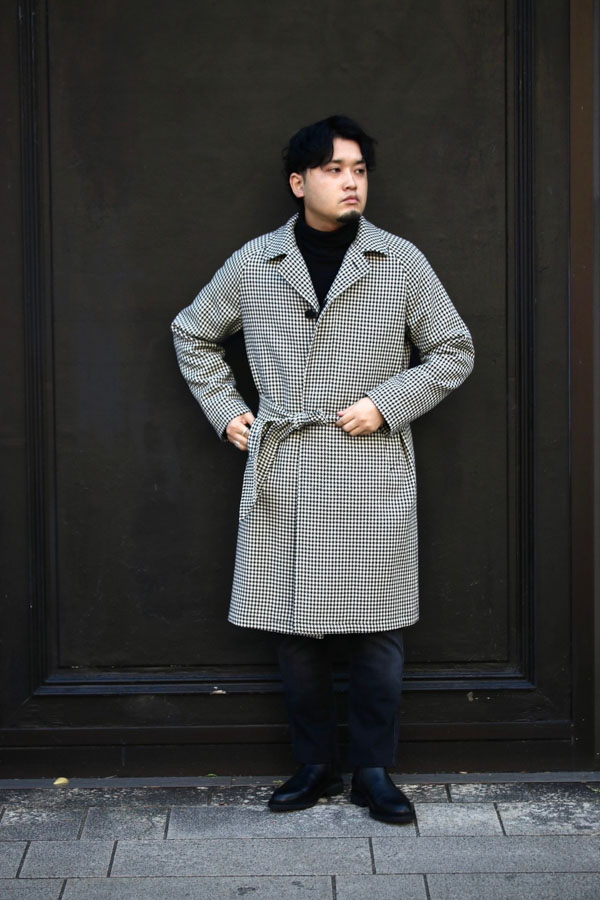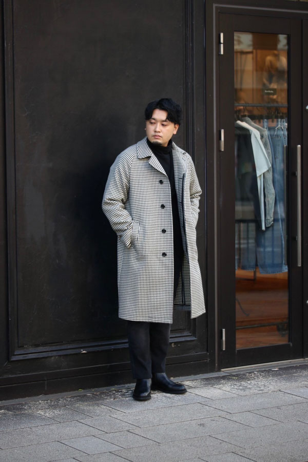 こちらのコートは今季トレンドでもあるハウンドトゥースの柄でありながら形はクラシックかつモダンさも感じるようなシルエット。全体的に程よいゆとりを持たせたこちらのコートは大人の余裕を引き立てる素敵なコートとなっております。