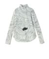 インナーには、地層石の断面から着想を得たマーブル模様のトップスを着用。