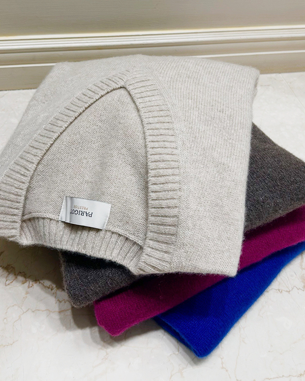 こちらは国内最高品質のピュアカシミヤを100%使用しており、空気を多く含んでいるので保温性が高く、ふんわりとしたやわらかな肌触りも抜群です!