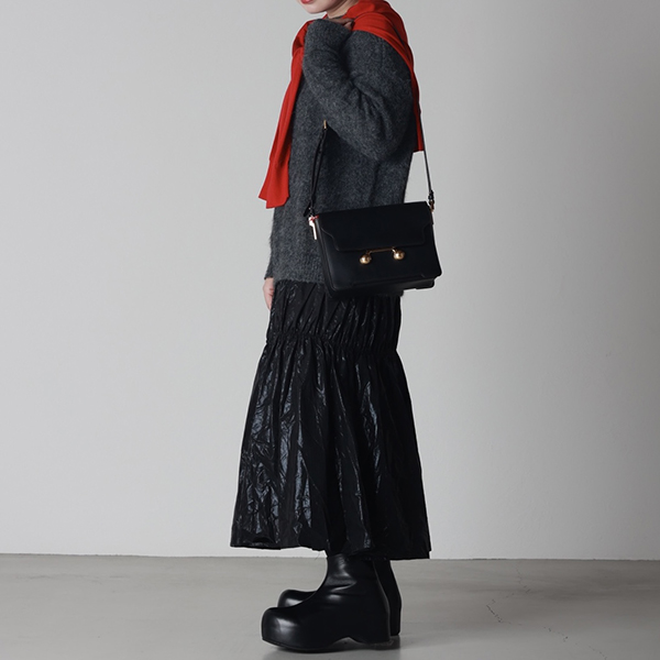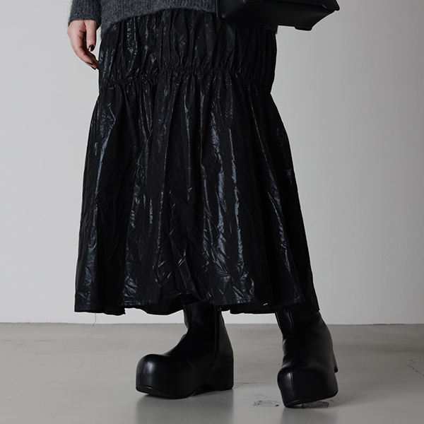 ニット部分にはしっかりウールが入っているので暖かく、スカート部分はなかなか無い光沢感があります。