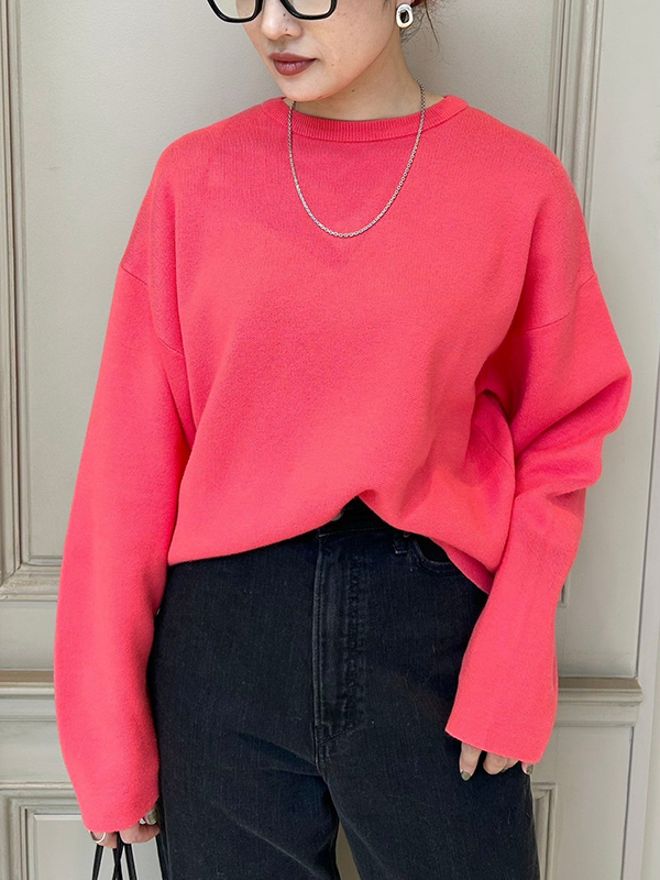 PARIGOT(パリゴ)のサーモンカラーのニットは、シンプルながらもゆったりとしたリラックス感のあるシルエットで、オシャレな抜け感をプラスしてくれます♪レーヨンポリエステルの混合素材で、今から春まで楽しめます。