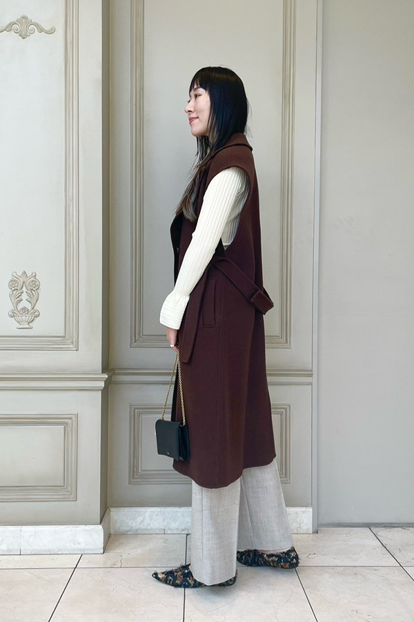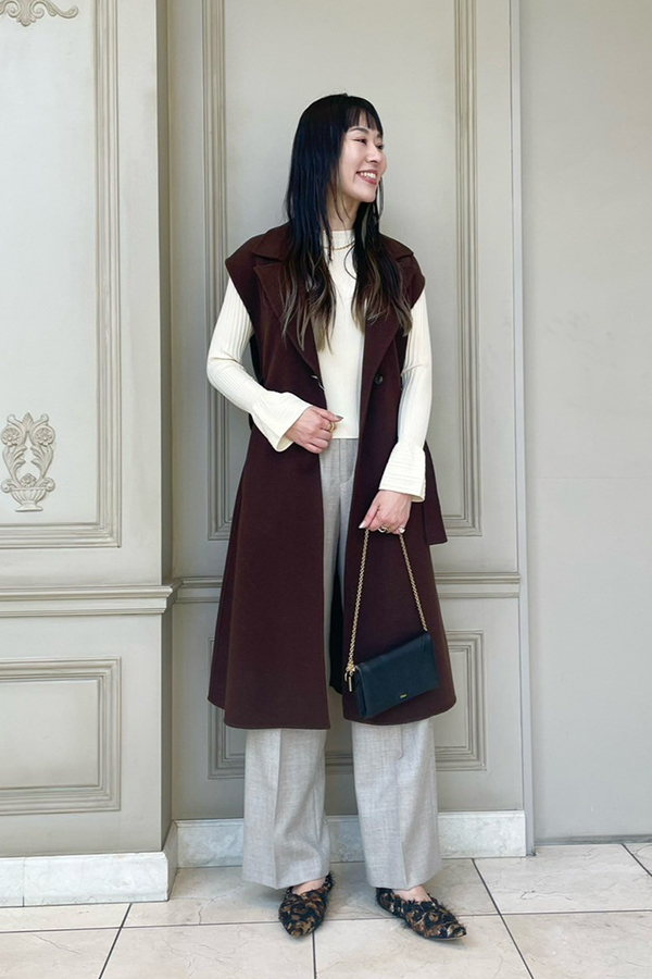 同ブランドのウール素材のセミワイドパンツもかなりオススメ。暖かく、楽チンと綺麗見えも叶う最強パンツです!