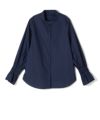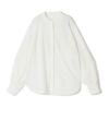 たっぷりとギャザーを入れたボリュームスリーブが印象的な長袖シャツ。