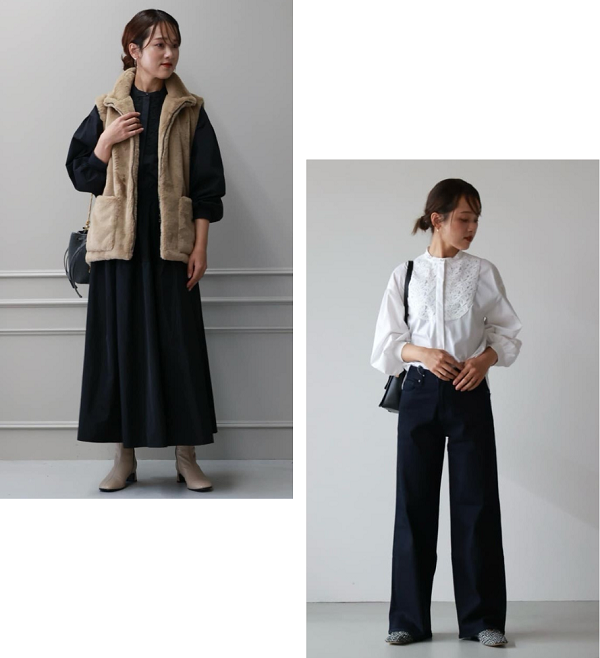 1枚でも映えて、レイヤードにも使える着回しアイテムです。着丈長めなので細身パンツか、インするスタイリングがおすすめです。